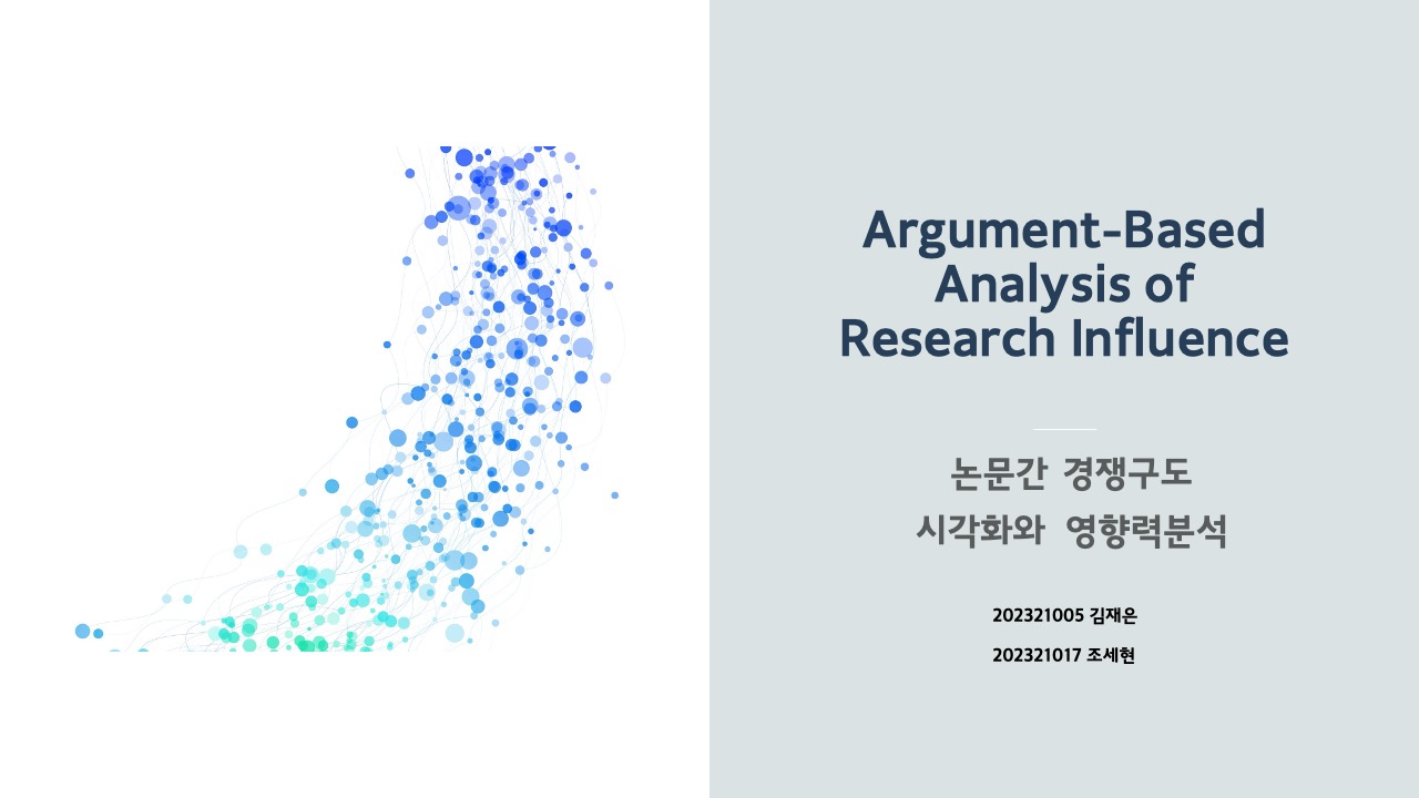 - 프로젝트: “논문간 경쟁구도 시각화와 영향력 분석”